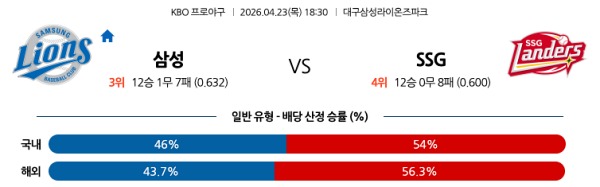 [KBO] 4월23일 토토분석 삼성 vs SSG 스포츠분석