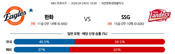 [KBO] 4월29일 토토분석 한화 vs SSG 스포츠분석