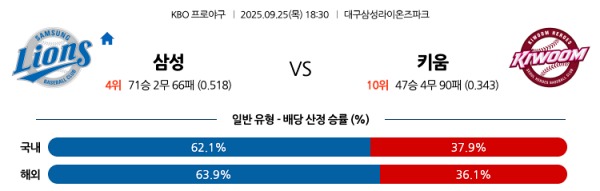 [KBO] 9월25일 토토분석 삼성 vs 키움 스포츠분석