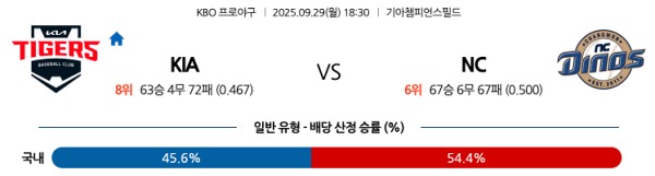 [KBO] 9월29일 토토분석 KIA vs NC 스포츠분석