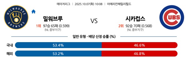 [MLB] 10월07일 토토분석 밀워키 vs 시카고컵스 스포츠분석