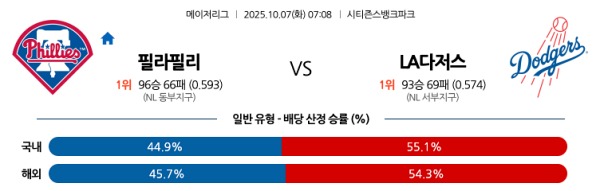 [MLB] 10월07일 토토분석 필라델피아 vs LA다저스 스포츠분석