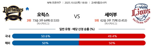 [NPB] 10월02일 토토분석 오릭스 vs 세이부 스포츠분석