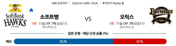 [NPB] 4월18일 토토분석 소프트뱅크 vs 오릭스 스포츠분석