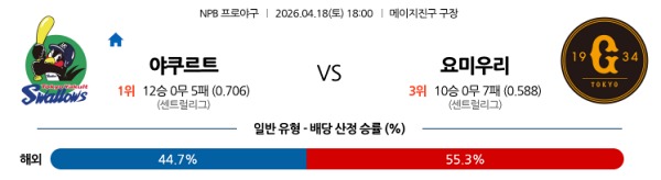 [NPB] 4월18일 토토분석 야쿠르트 vs 요미우리 스포츠분석