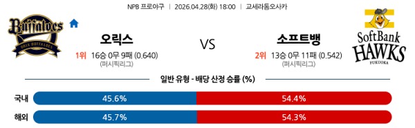 [NPB] 4월28일 토토분석 오릭스 vs 소프트뱅크 스포츠분석