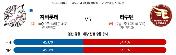 [NPB] 4월28일 토토분석 지바롯데 vs 라쿠텐 스포츠분석