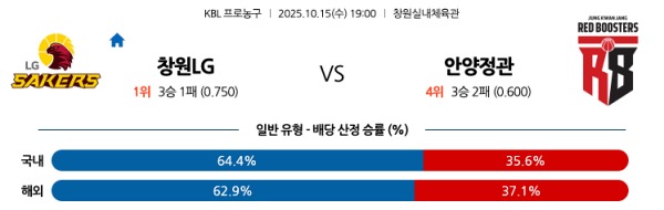 10월15일 창원 LG vs 안양 정관장 토토분석