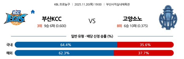 11월20일 부산 KCC vs 고양 소노 토토분석