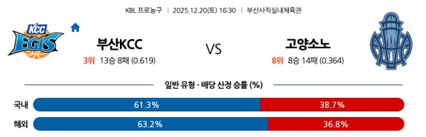 12월20일 부산 KCC vs 고양 소노 토토분석
