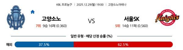 12월29일 고양 소노 vs 서울 SK 토토분석