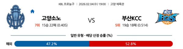 2월04일 고양 소노 vs 부산 KCC 토토분석