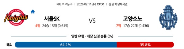 [KBL] 2월11일 토토분석 서울 SK vs 고양 소노 스포츠분석