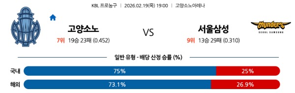 2월19일 고양 소노 vs 서울 삼성 토토분석