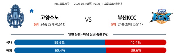 [KBL] 3월19일 토토분석 고양 소노 vs 부산 KCC 스포츠분석