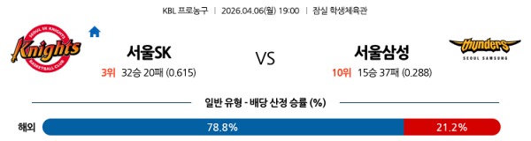 [KBL] 4월06일 토토분석 서울 SK vs 서울 삼성 스포츠분석