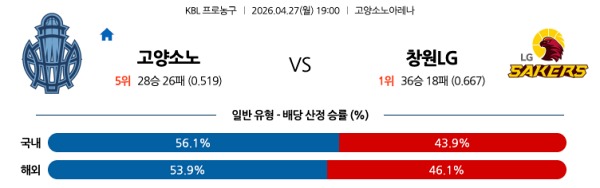 [KBL] 4월27일 토토분석 고양 소노 vs 창원 LG 스포츠분석