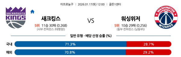 1월17일 새크라멘토 킹스 vs 워싱턴 위자드 토토분석