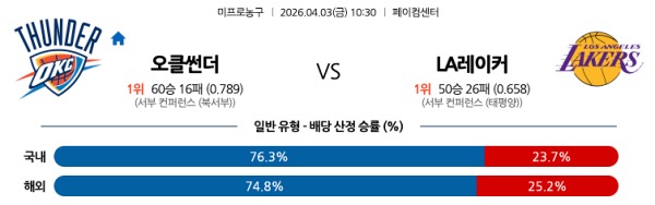 4월03일 오클라호마시티썬더 vs LA레이커스 토토분석