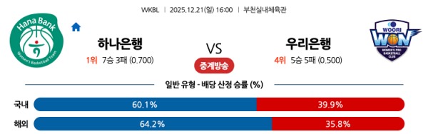 [WKBL] 12월21일 토토분석 하나은행 vs 우리은행 스포츠분석