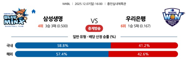 [WKBL] 12월7일 토토분석 삼성생명 vs 우리은행 스포츠분석