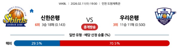 [WKBL] 2월11일 토토분석 신한은행 vs 우리은행 스포츠분석