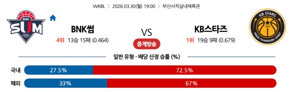 [WKBL] 3월30일 토토분석 BNK썸 vs KB스타즈 스포츠분석