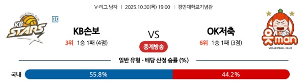 10월30일 KB 손해보험 vs OK 저축은행 토토분석