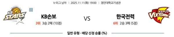 [남자V리그] 11월11일 토토분석 KB 손해보험 vs 한국전력 스포츠분석