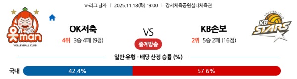11월18일 OK 저축은행 vs KB 손해보험 토토분석