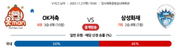 11월27일 OK 저축은행 vs 삼성화재 토토분석