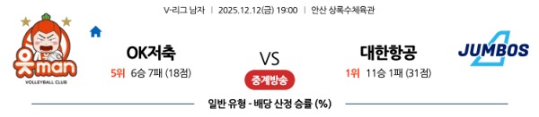 12월12일 OK 저축은행 vs 대한항공 토토분석