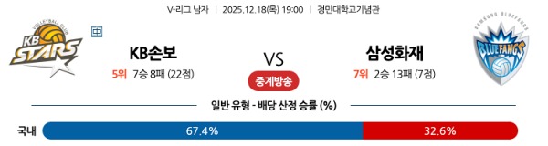 12월18일 KB 손해보험 vs 삼성화재 토토분석
