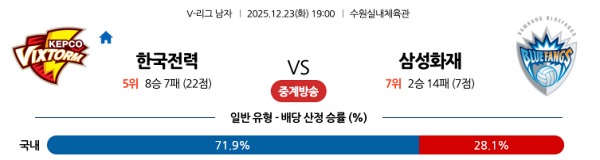 12월23일 한국전력 vs 삼성화재 토토분석