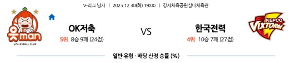 [남자V리그] 12월30일 토토분석 OK 저축은행 vs 한국전력 스포츠분석