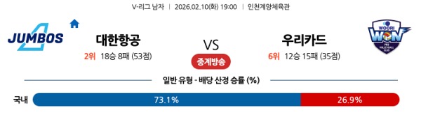 [남자V리그] 2월10일 토토분석 대한항공 vs 우리카드 스포츠분석