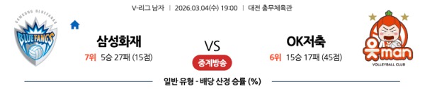3월04일 삼성화재 vs OK 저축은행 토토분석