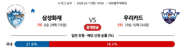 3월17일 삼성화재 vs 우리카드 토토분석