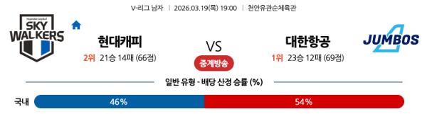 [남자V리그] 3월19일 토토분석 현대캐피탈 vs 대한항공 스포츠분석