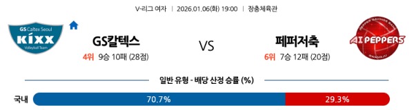 1월6일 GS 칼텍스 vs 페퍼저축은행 토토분석