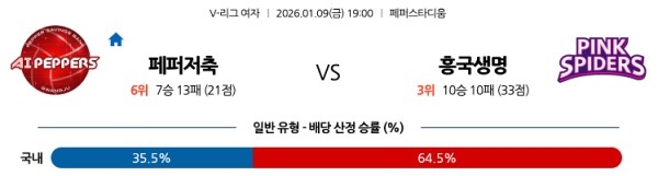 1월9일 페퍼저축은행 vs 흥국생명 토토분석