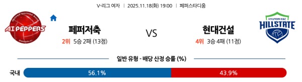 11월18일 페퍼저축은행 vs 현대건설 토토분석
