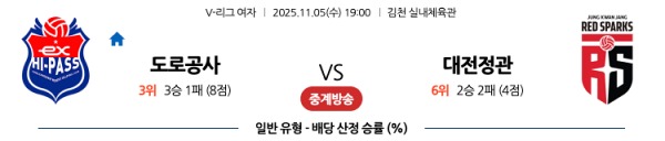11월5일 한국 도로공사 vs 정관장 토토분석