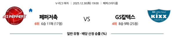 12월30일 페퍼저축은행 vs GS 칼텍스 토토분석