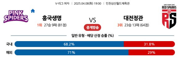 [여자V리그] 4월8일 토토분석 흥국생명 vs 정관장 스포츠분석